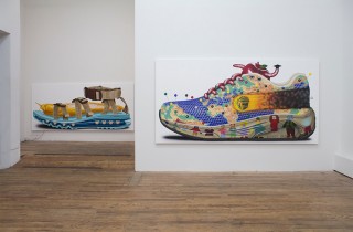 Currently at 247365 in New York, Henry Gunderson has a show on view entitled Shoes Etc consisting of five new paintings and a sculpture. For his second solo with the gallery, the talented young artist presents his shoe ecosystem paintings as the main attraction, each one centered on a theme or idea. Rounding out the exhibition is a sculpture hanging from the ceiling along with a shoe drive to support Shoes For All, giving visitors a chance to donate footwear to a good cause. Discuss Henry Gunderson here.