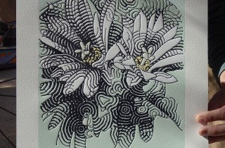 It’s hard to believe but the Peyote Blossoms print from El Mac is still available from Santo Press. The 13.5″ x 10.5″ image on 17.5″ x 13.5″ paper comes in an edition of 45 and costs $300. The beautiful six color relief print from photopolymer plate and multi-block linocut comes signed and numbered and can be purchased here. Discuss El Mac here.