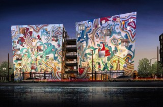 The Portland Design Commission recently approved James Jean’s (interviewed) design for the facade of the Fair-Haired Dumbbell, a building currently under construction near Burnside Bridgehead in Portland. The Los Angeles-based artist’s imagery, inspired by roses and thunder eggs, will wrap the 8 sides of the two-building creative office project, and also cover the roof. Read more about the project here. Discuss James Jean here.