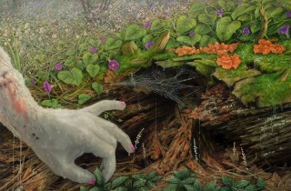 On December 10th, beinArt Gallery will be opening a new three person show entitled Myth and Mutation featuring the work of Adrian Cox, Christopher Ulrich, and Amanda Sage. We are looking forward to Cox’s lush paintings in particular, featuring his grotesque humanoid forms which appear to be created from amalgamations of the natural world and other organic material. Take a look at more preview images below… Discuss Adrian Cox here.