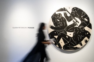 Over the weekend, the Library Street Collective hosted the opening for a new show from Cleon Peterson in Detroit. Poison features new paintings featuring nightmarish scenes of violence and gore, nothing new to fans of the former assistant to Shepard Fairey. What is new though are the sculptural editions that Peterson has included in the new body of work, a natural next step to bringing his provocative imagery to life. Photo credit: Sal Rodriguez. Discuss this show here. Discuss Cleon Peterson here.