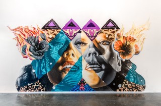 Last month, two veterans of POW! WOW! Hawaii joined forces to collaborate on an indoor installation for Olukai Shoes’ #anywherealoha campaign. Kamea Hadar traveled from the islands to Tristan Eaton’s homebase, Los Angeles, to join him in painting the mural entitled Pele, Maila, Hina. Steeped with symbolism from Hawaii, the piece blended Hadar’s portraiture with Eaton’s signatures patchwork style. At the end of the night, the wall was buffed, a tribute to the temporary nature of street art. Hadar further explains the mural – “When we […]