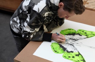 We just received these images from Idem Studio in Paris showing Ludo (interviewed) adding final touches to his upcoming lithograph (edition of 99), set to be released Thursday, 11th of December with PrintThemAll studio. The title is 344, and is one of the butterflies he introduced at his recent London solo at Lazarides (covered). With the title of the recent show, Chaos Theory, in mind, referring to the global situation and human influence on nature & environment, the French artist picked an image representing the butterfly effect. Using his signature black and […]
