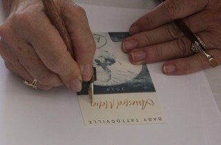 The guests and artists are shuffling into the beautiful Mission Inn Resort as Baby Tattooville 2014 starts! All attendees are treated to their names being handwritten by a calligraphy artist for their name badges (actually limited edition prints from Joe Sorren), as well as receiving their official welcome kit. Below are pictures of some of the guests, as well as some of the artists like Brom, Laurie Lee Brom, Brandi Milne and Jeff Soto checking in for the event. The art retreat runs all weekend […]