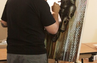 Returning to the massive Ace Gallery showspace in Beverly Hills after a successful solo there in 2010 (covered), the Date Farmers will be opening another exhibition tonight entitled Shit Ain’t Funny. Hailing out of the Coachella Valley, the two collaborative artists whose real names are Armando Lerma and Carlos Ramirez will be presenting works that deal with social and political issues of the working class. The themes explored are near and dear to their hearts, not surprising after considering the blue-collar community where they are based. They […]