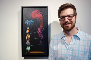 Last weekend, AM stopped by Thinkspace to check out the almost sold-out solo from Jacub Gagnon (interviewed) entitled World’s Collide. Painted against a black background, the surreal portraits of his chosen creatures really pop and seem even more vivid. Full of whimsy and imaginative touches, you can see the Toronto-based artist thought carefully about each element of the pieces, from title to composition. Take a look at more photos from the opening below. Discuss this show here. Discuss Jacub Gagnon here.