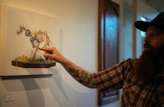 Last month, the the Antler Gallery in Portland opened a joint exhibition between Josh Keyes (interviewed) and Neil M. Perry entitled Entwined. The showing highlighted how both artists were in tune with nature with their work, focusing on the interplay between species and the surrounding environment, often rendered with surreal elements. The two locally-based painters also found time to collaborate on a piece together (seen above). Take a look at more photos from the opening below… Photos via the gallery. Discuss Josh Keyes here. Discuss this show here.