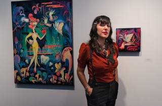 On April 3rd, Camille Rose Garcia (interviewed) opened her latest solo show at Roq la Rue, titled La Danse Macabre, which translates to Dance of Death, a theme originated in the late middle ages to remind us that no one escapes the hand of death. Camille’s trademark style is on display as Death serenades its future victims Ghost moths and severed hands adorned with black glitter abound as the ghastly images contrast with the neon induced paint. Surroundings of flowers and mushrooms explode with color over […]