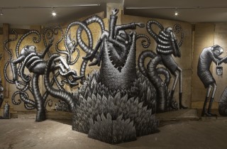 British artist Phlegm opened his first ever gallery show at Howard Griffin Gallery in Shoreditch on Saturday, the first of February. The Bestiary is entirely a non-commercial exhibition meaning the entire installation was created for the purpose of showing in this space only. The Sheffield-based artist has been working long days since mid December, building the installation, cutting up panels, and creating plaster sculptures that were later painted over in his recognizable style. With his impeccable feel for light and shadow, and his meticulous, almost obsessive line work, these 3D creations […]