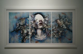 Italian artist Marco Mazzoni recently crossed the pond to exhibit at Jonathan LeVine Gallery. Entitled Animanera (Italian for “black soul”), this show explores the dark themes of social ailments currently plaguing his home country of Italy. Utilizing his signature style of combining organic shapes & textures with chiaroscuro contrasts in light and shadow, Marco created ten works of amazing color pencil works that balances portrait and still life. Check out the detailed goodness below. Discuss Marco Mazzoni here.