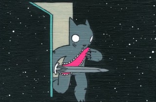 This Friday night (May 31st), Berkeley-based Deth P. Sun will be opening a new solo show in Brooklyn entitled This Is My Jam. Like many of his previous exhibitions, the body of work consists of whimsical paintings of his cat-like creature in various adventurous situations and environments. Take a look at some preview images below… Discuss this show here. Discuss Deth P. Sun here.