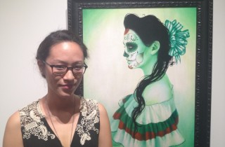 Last night, the CHG Circa Gallery in Culver City held the opening for Sylvia Ji’s (interviewed) solo show featuring her paintings inspired by Día de los Muertos. Entitled appropriately Catrina, after the beautiful lady of the dead, the new body of work encompassed a selection of portraiture incorporating much of the imagery and iconography of the holiday. Along with full scale works, there were also smaller closeup pieces of faces as well as some limited edition offerings. Photo credit: Peter Svab. Discuss this show here. Discuss Sylvia Ji here.