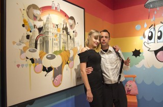 Last weekend, deep in the heart of Los Angeles, the Known Gallery unveiled the latest work from the locally based duo, Dabs Myla. Break Night Lovers featured drawings, paintings, art objects, and a whimsical installation mimicking the inside of house complete with a fridge, painted stove, TV, table, chairs, and more. Executed in the Aussie couple’s signature cartoonish style, the showspace looked like the set of an animated feature where inanimate objects came to life whether painted on walls or in a three-dimensional form. The show […]
