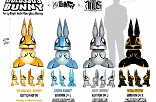 Collectors of art toys out there know that one of the old school holy grails out there are the original Wheaty Wheat figures from Joe Ledbetter – Mr. Bunny, Snow Bunny, and Lava Bunny. After a six year hiatus, the signature character from Mr. Ledbetter is back; this time in a 48″ tall fiberglass edition appropriate entitled Colossus Bunny. The run will be very limited and cost about $4000 depending on the retailer and edition. More details including the new design after the jump…