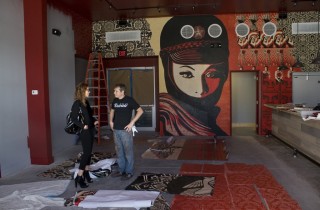 What’s Basel week without our friend Shepard Fairey? Fortunately, we don’t have to find out this year. He’s already down in Miami installing his mural inside the Wynwood Walls cafe with imagery including “Peace Elephant” and “Mujer Fatal”. More image of the completed mural after the jump…